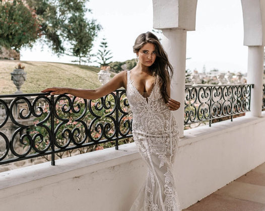 The Zola is a captivating mermaid gown adorned with exquisite embroidered lace and a sweeping train. Its elegant V-neckline and low V-back create a stunning silhouette, while slender straps add a touch of delicate charm. Perfect for the bride seeking a timeless and romantic look.